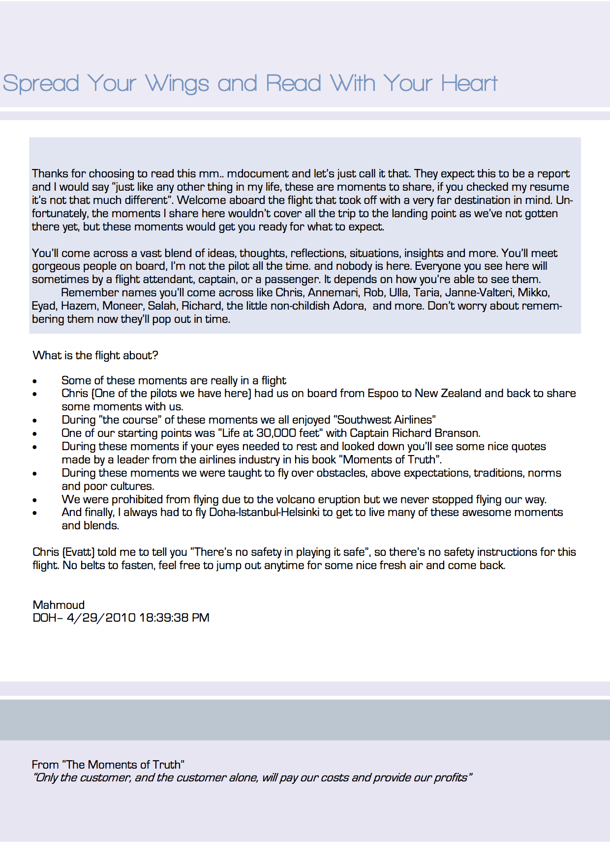- During these moments if your eyes needed to rest and looked down you’ll see some nice quotes made by a leader from the airlines industry in his book Moments of Truth.