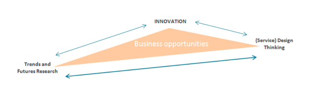 In current literature and practices the combining aspect for “Service Design Thinking” and “Futures Research” seems to be “Innovation”. Innovation is the umbrella for Service Design and Futures Research since the ultimate goal for both practises in the context of target oriented business is to bring novelty and new opportunities for both existing and future markets.