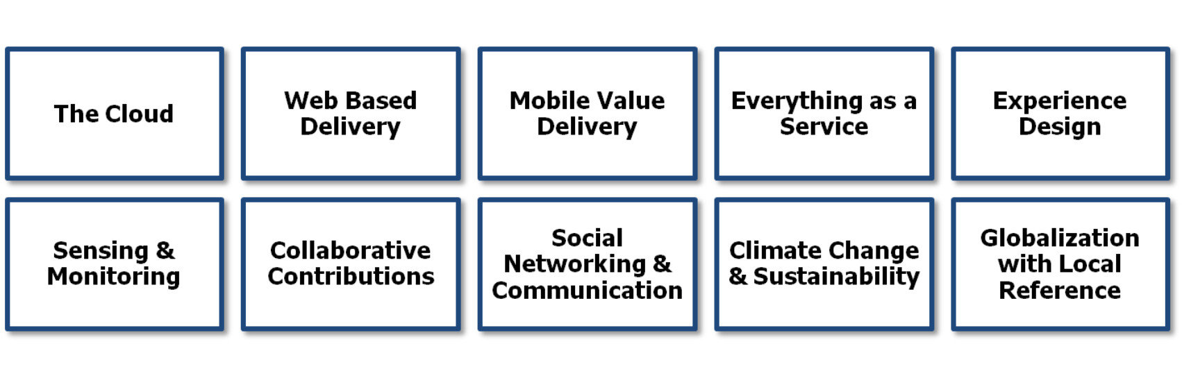 In addition to the shift in their mindsets, companies should focus on the global megatrends that are currently shaping the future business landscape. These megatrends will have a significant impact on creating new possibilities for service business innovation.
