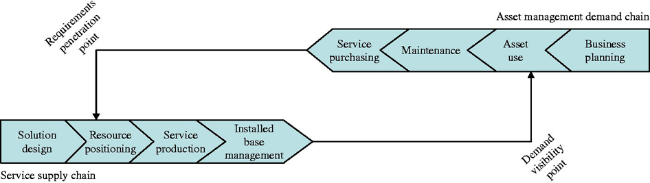 Horizontal service network focuses on outsourcing the operation and maintenance of a diverse set of original equipment. A company delivers spare parts and knowledge intensive services for solving complex product failures. Outsourcing specialist aims at operational efficiency of the installed base and often takes over responsibilities for maintaining the installed base. IT-service providers offer remote services to watch the condition and usage of the installed base. Company offers services supporting the life-cycle of the product as well as the integration of product and services into customer-specific solutions.