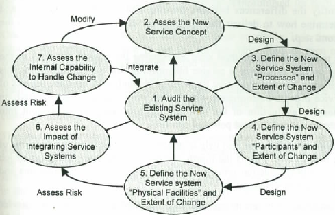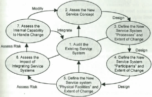 But what about other people then? The book argued that even though customers are vital, so are also the stakeholders, the management and the internal communication. It is vital that the customer knowledge goes through the whole organization. Why? Simply because that it is organization´s responsibility to build up required resources and structures in order to get the service process ongoing. By using different tools presented in the book like Policy Deployment, management can implement guidelines, supervise and monitor how to deliver the new service development process sufficient. The figure below shows the seven steps of framework concerned mainly with the implementation phase, but also deals with the service design issues.