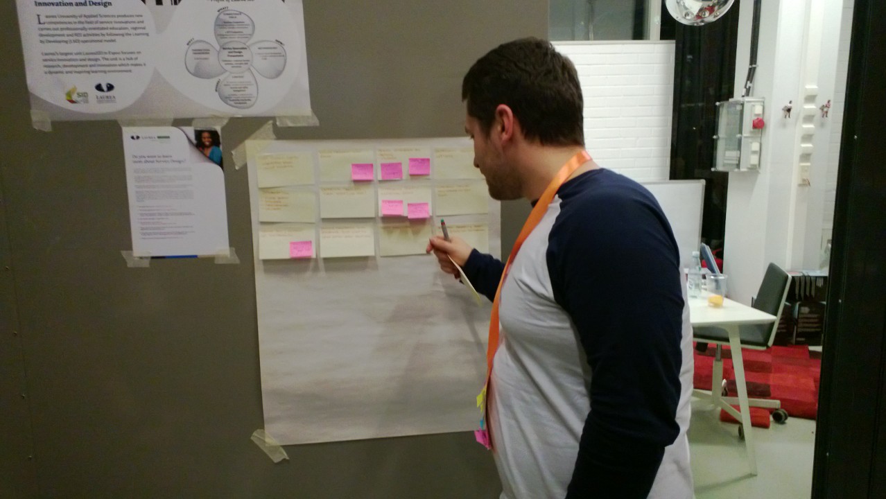 Having service design processes workshop in SID studies in Laurea, I knew from where to start. Our first and a last action of the day was to group our ideas into manageable topics, extract from it our focus areas and connect it with target groups we set. We had done it really fast and we were ready for next day challenges.