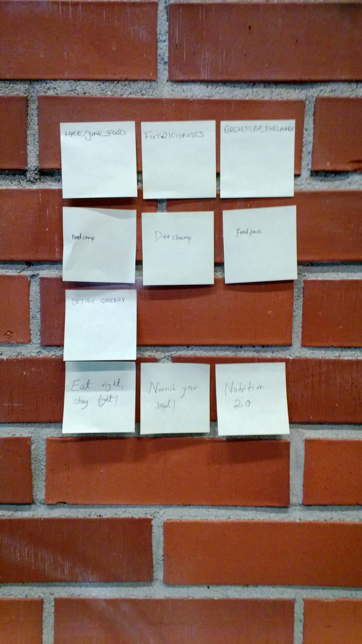 It took me sometime to clarify what I would like to explore, however I had luck as there were 3 more guys interested in the topic. We immediately started discussion about health, nutrition, diet and that’s how our concept got approved and later on expanded. We used sticky notes to find out what issues and problems we were having in mind.
