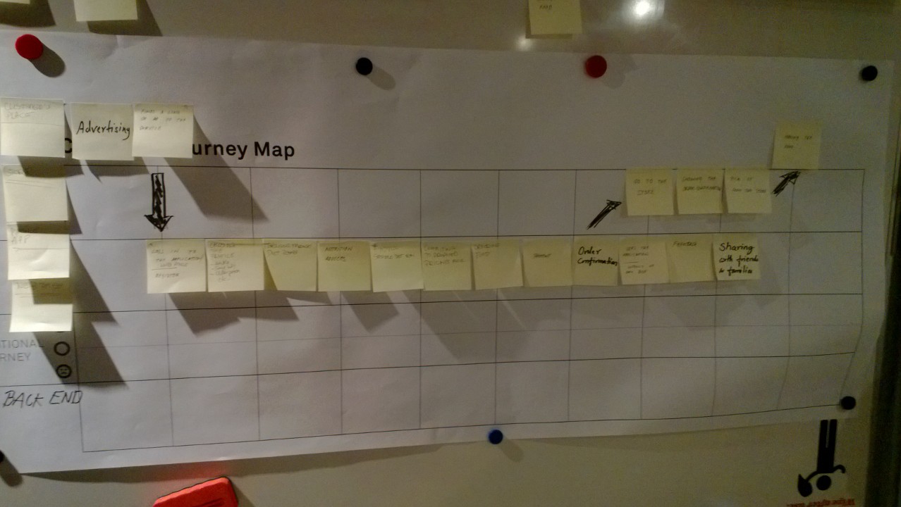 To be sure about the issues we found, we went to nearest shopping center and interviewed over 13 people to know their issues with nutrition, eating and shopping habits. We learnt a lot about customer’s experiences and we verified our assumptions. When we went back to workshop, we immediately updated our Personas and we iterated it several time to be sure we did not miss anything on the way. We created customer journey based on targeted group, and we felt really excited, that we already achieved so much.