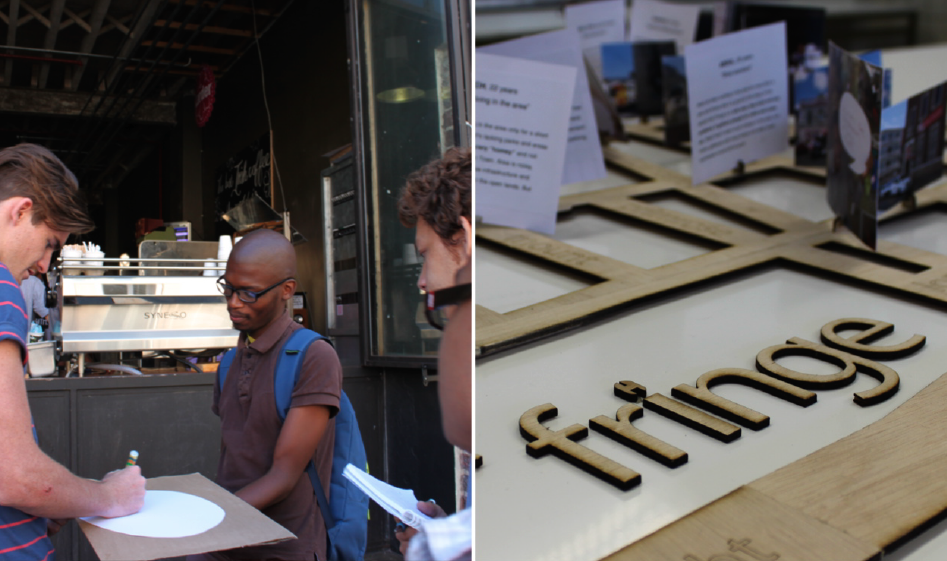 At the end of February students from KISD came to hold a week long workshop to study and discuss the topic and the potential role of design in urban development together with CPUT students. We started with an introduction on findings from Neukölln, Berlin and were then divided into groups to investigate and produce presentations on the phenomena from Cape Town perspective. My group decided to focus on Fringe, an area with rather shady reputation but under government lead renewal programme. Our aim was to map the “voices” and thoughts of the people living and working in the Fringe, about the past, present and future. We interviewed people representing different “walks of life” and created a three dimensional map of the area with citizen profiles, as well as an audio recording of the expressed viewpoints.