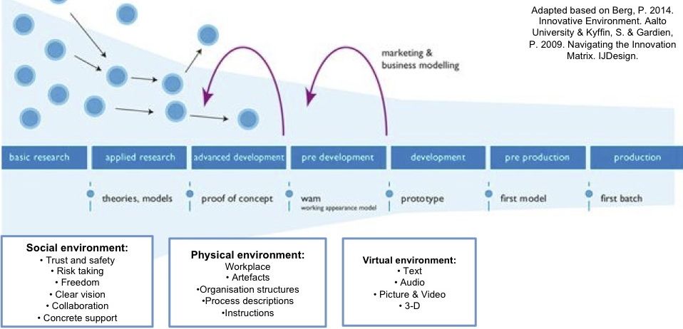 Sadly, the atmosphere I just described, seems to be given way too little attention in discussions related to innovation and innovativeness. Frequently, innovation is approached as a ”spiritless tunnel”, a process, that starts with some research and ends with commercially viable output. This linear approach is commonly known as the ”innovation funnel”. The role of practices, organizational structures and IT infrastructure is emphasized. “Softer”, social aspects – culture, communication, collaboration and team building among others – are only shortly pointed to when discussing “the enablers of innovation”.