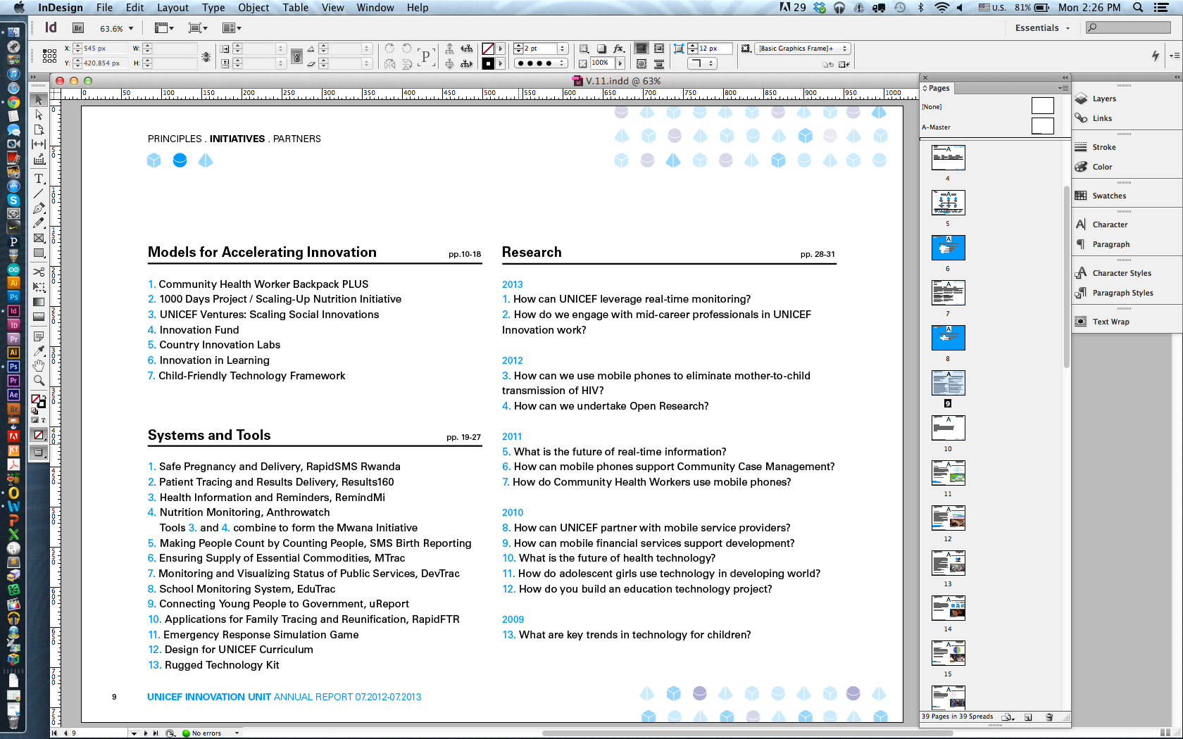“InDesign is used to create books and layouts. It allows delicate control over typography, more control than with Microsoft Word. You can move each letter and paragraph to the exact place you want. You can also set styles for paragraphs and characters that you can apply to the whole document.”