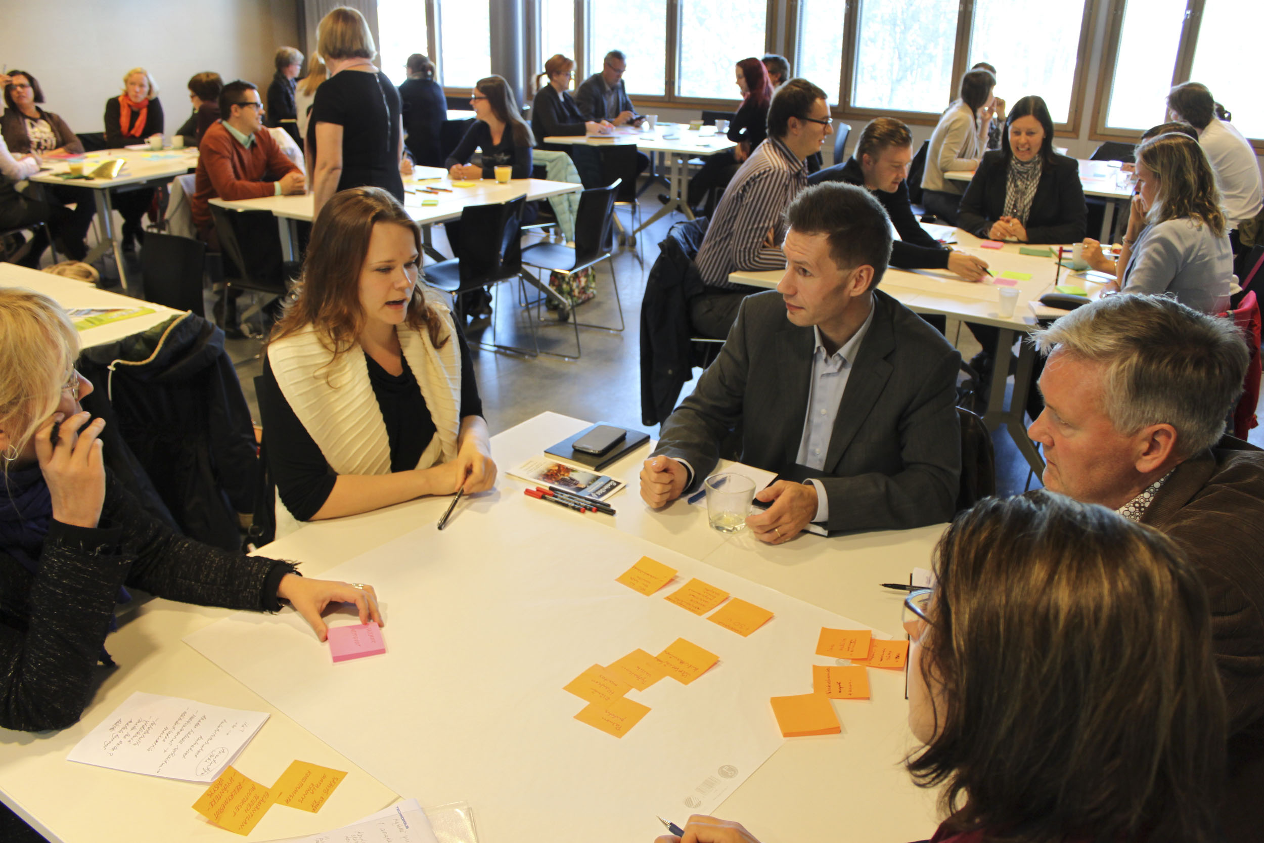 In a workshop part hosted by principal lecturer from Laurea UAS Leena Alakoski, participants worked with customer personas, customer journey and Lean Business Model Canvas. At the end of the session every group shared their results.