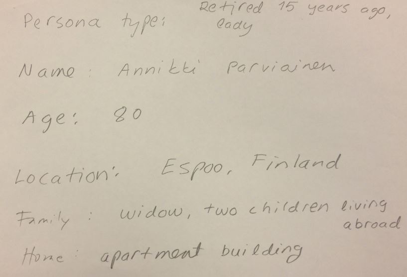 We created a persona, Annikki 80 years old, who was a person we wanted to plan for.