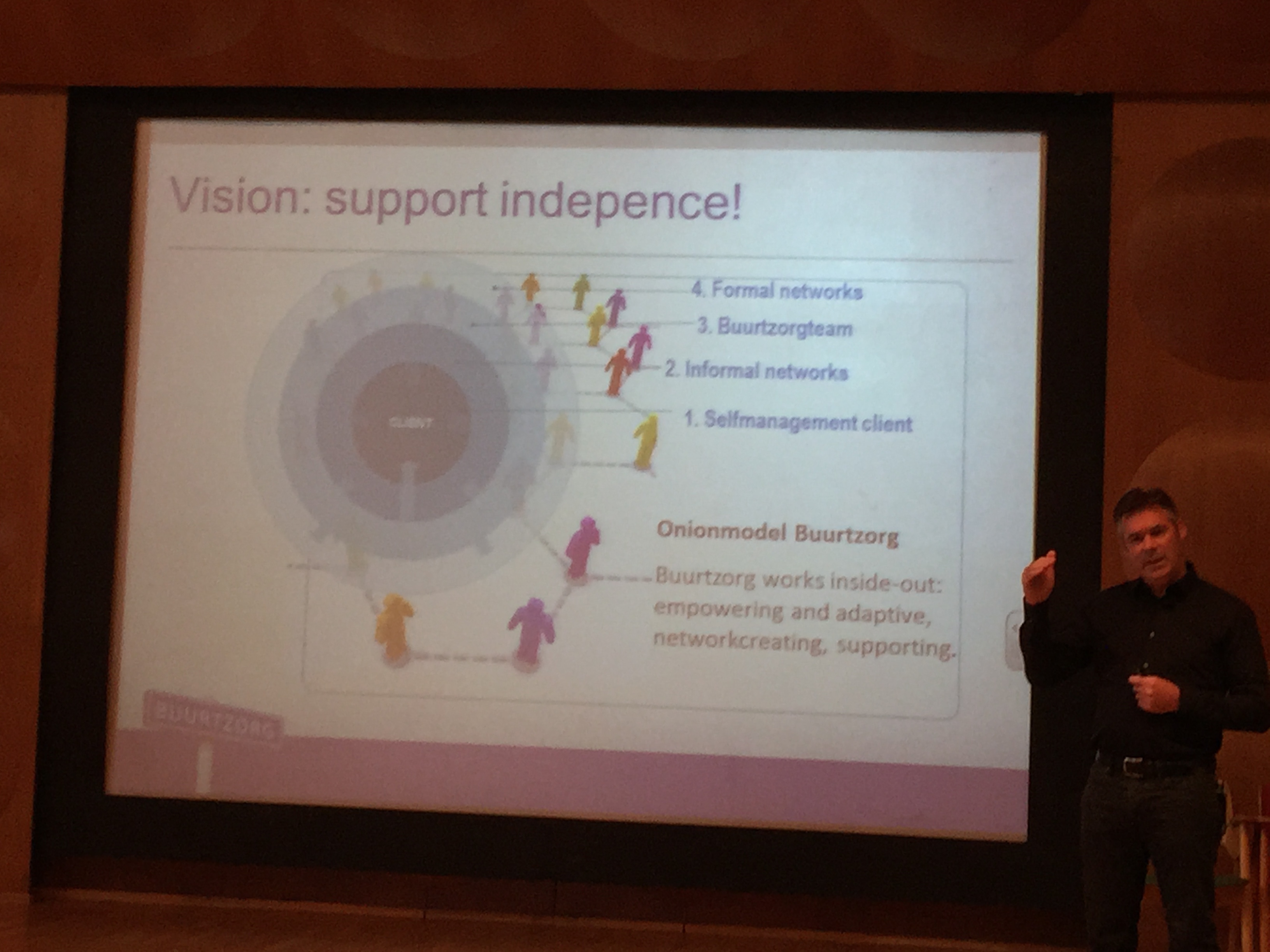 Buurtzorg wants to support the independence of the client by empowering patient with formal and informal networks, which latter are much more important. Buurtzorg`s teams are making this all possible. Buurtzorg`s principles are: