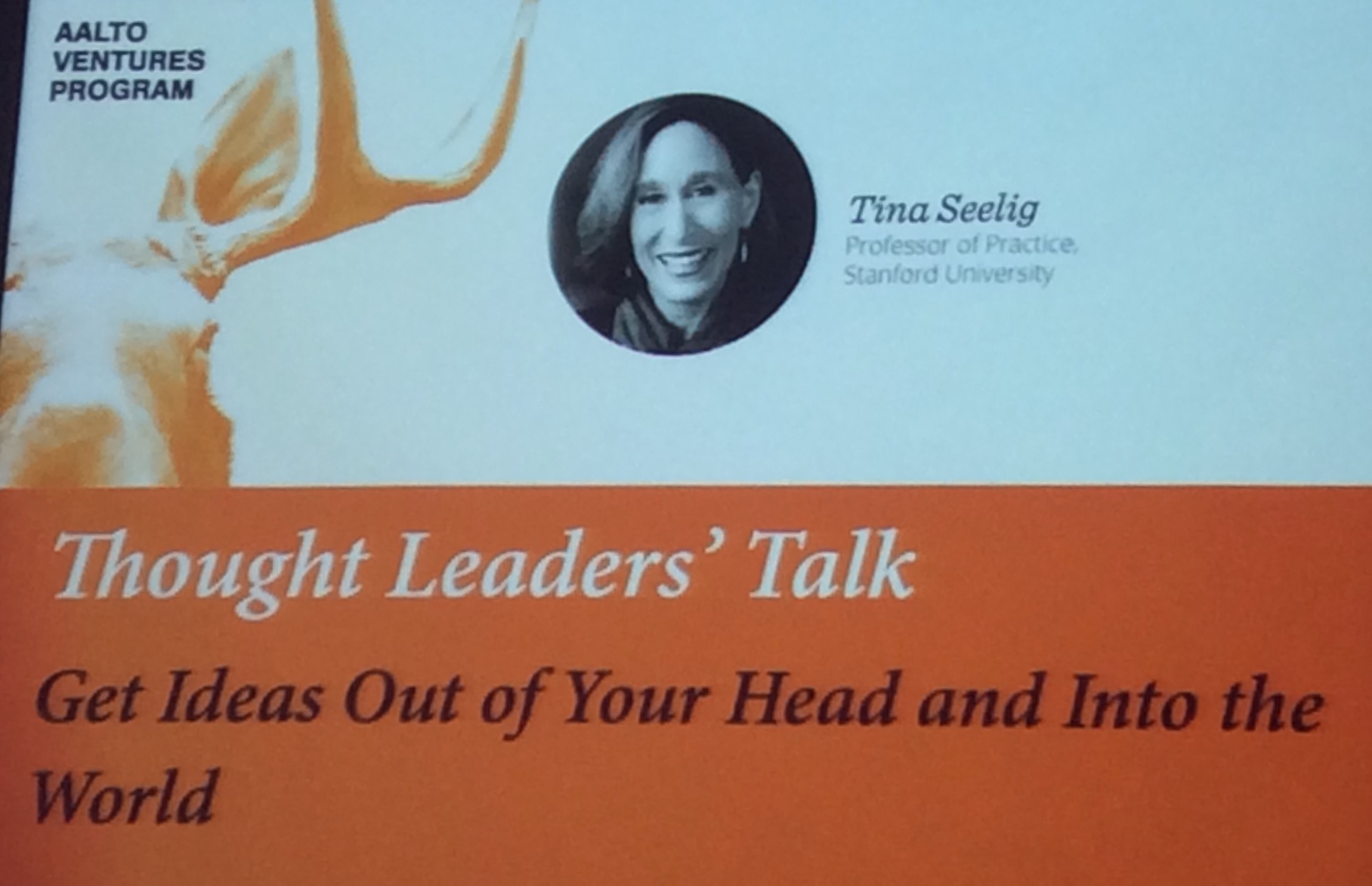 In the very first day of SID program, I spent evening after the course getting inspired by Tina Seelig, a Stanford University Professor and co-director for the Stanford Technology Ventures Program. The forum was Aalto Design Factory’s series of Thought Leaders’ Talks. Tina has been recognized as a national leader in engineering education and she teaches courses on creativity, innovation and entrepreneurship in the Hasso Plattner Institute of Design. Yep, you remember correctly, the same institute from which Katja Tschimmel introduced us one of the pioneering innovation models.
