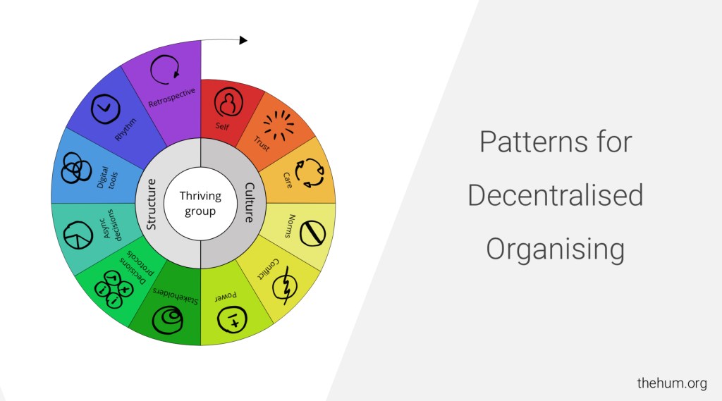 Generally I learned at the workshop that when designing an organization there are lots of things that need to be taken into account – it’s not only about structures, but also about culture and those things that are often either taken for granted or not spoken about, e.g who is doing care work at the office, like organizing birthday gifts for collagues or seeing to general well-being. An organization is never a given, but an entity that can be purposefully designed, like a service or product, and decentralization is a way of designing organizations in a new, very contemporary way.