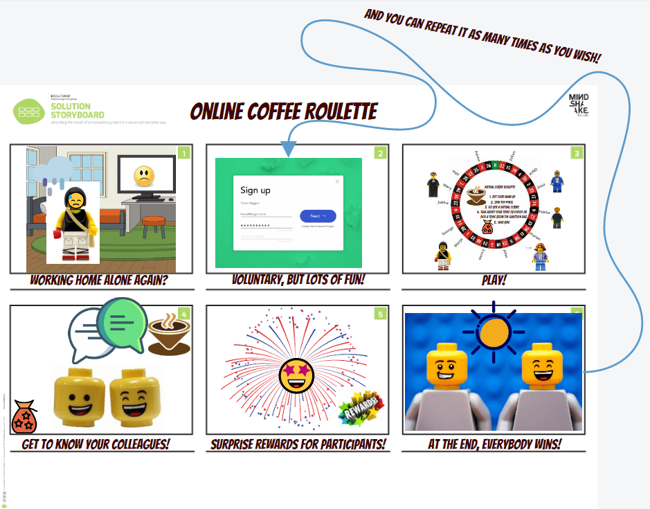 We discussed each step of the Mindshake model with six stages and applied these steps to solve suggested problems. From all the tools, we found the insight map the most fascinating to learn. One interesting aspect in our sessions was the way we used Miro board to imitate a real-life classroom situation. The digital whiteboard enabled us to work together side by side in a way similar with actual interaction.