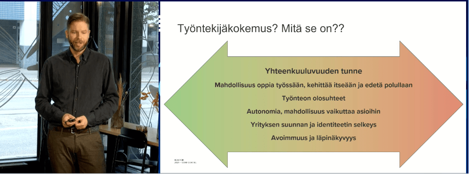 Panu Liira from Reaktor pointed out in his speech that employee experience was before pandemics a critical business factor and it is even more critical now when companies are planning their “return to office”. Physical contacts and interactions are in big role when talking about well-being in the future and many companies renew their offices to better answer to this need.