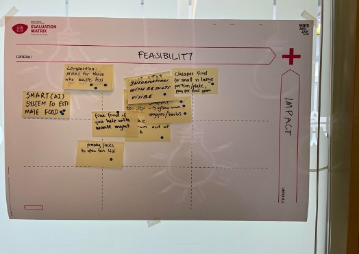 In what if, team will ask all the possible questions to unlock all the possible doors for the solutions. The diverse team will help to analyze and glance problem for all possible angles and lens. It is divergent process where is no limitation on the possible solutions. This process is followed by the convergent process in which all the list possible solutions are ranked and evaluated. For an example, in intent described above we used evaluation matrix to arrange collected ideas in feasibility and impact axis as shown in figure.