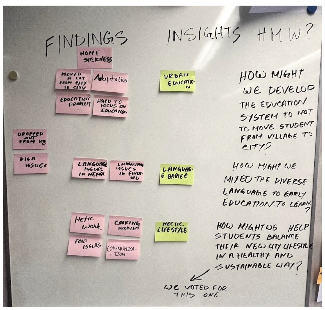 After the interview, we analysed the collected information and identified key findings, which were then transformed into insights. Based on these insights, we developed “How Might We” questions to define our design challenge: