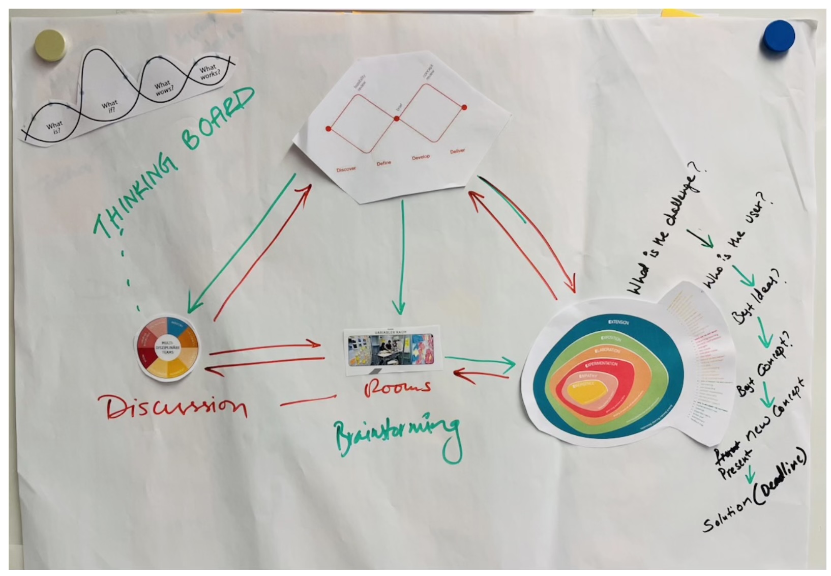 Similarly, in her book (2014), Kimbell presents practical tools such as interviewing, idea generation, and prototyping, all of which were applied during the workshop. The workshop materials also reinforced the importance of the Double Diamond model, showing how innovation moves between divergent and convergent thinking.