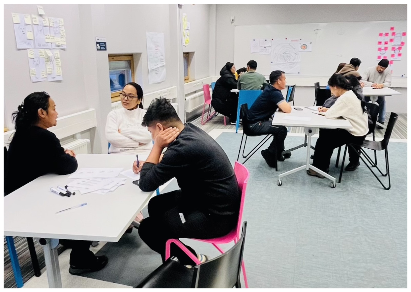 This exercise demonstrated divergent thinking, a key principle in design thinking where multiple ideas are explored without early judgement. As highlighted in the workshop materials, this stage encourages openness and flexibility in problem-solving.