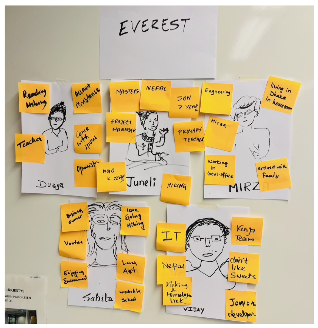 Interviews, portrait, DT process model exercise and observation activity
