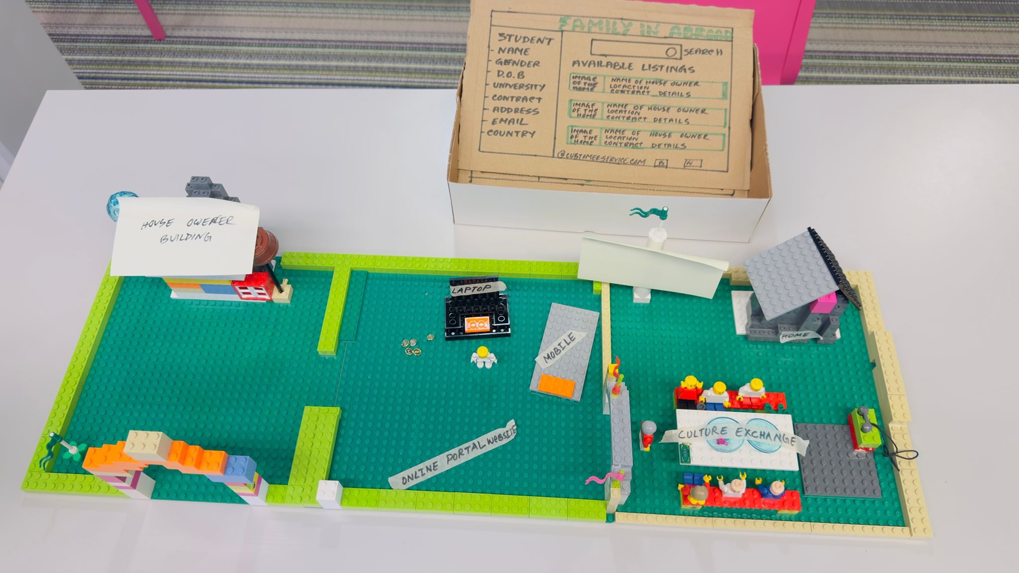This stage reflects convergent thinking, where ideas are evaluated and refined. Our group developed the concept “Family In Abroad,” a service designed to support international students in building communities while promoting sustainable living. We then created a prototype concept for a mobile application to visualise the idea.