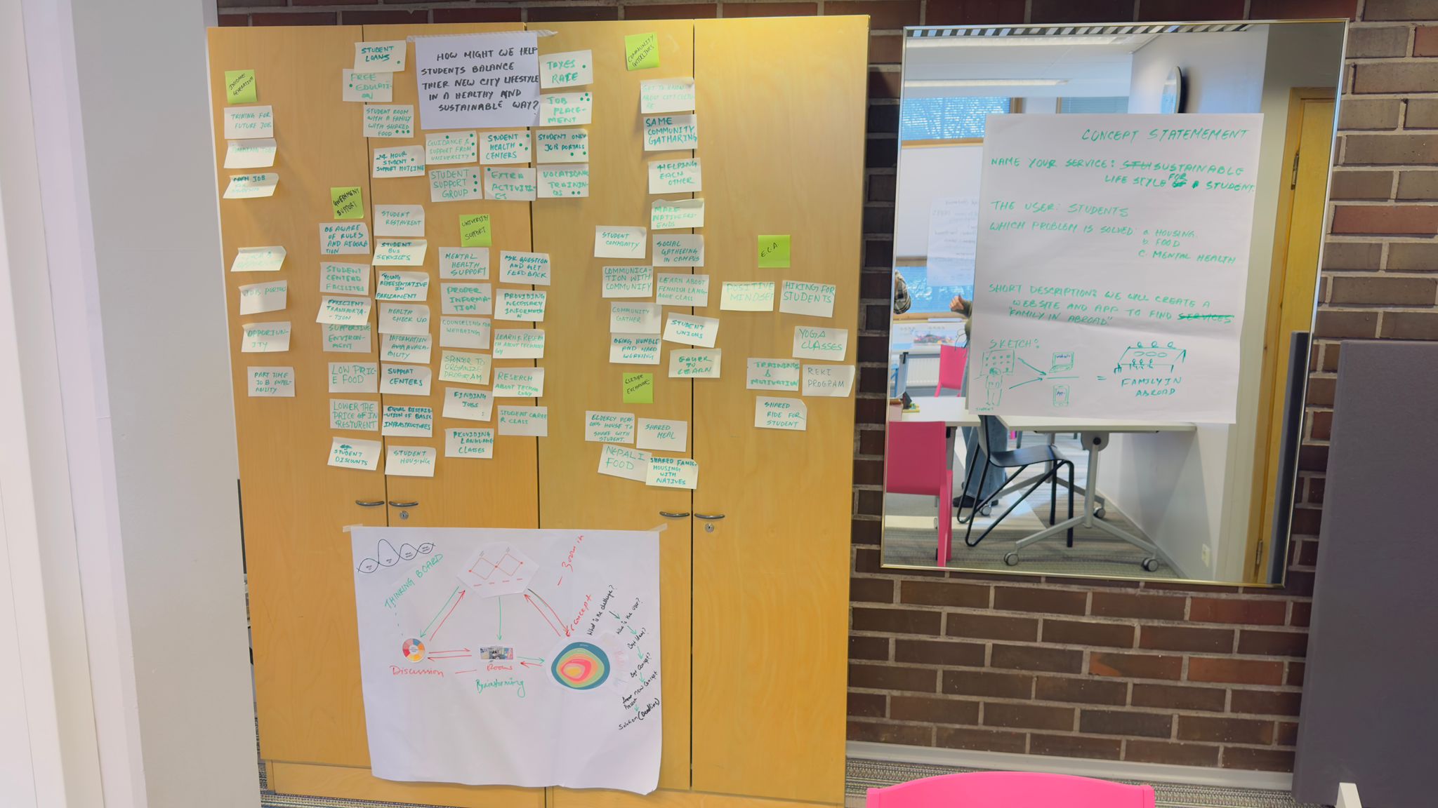 Following individual idea generation, we clustered ideas into categories and conducted a voting process to select the most promising concept.