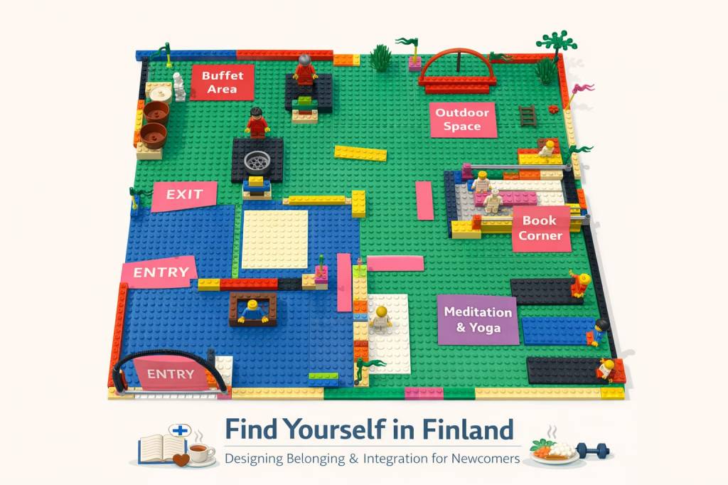During the workshop our team created a service concept called “Find Yourself in Finland”. It was meant to help newcomers adapt to life in Finland. Our prototype included:
