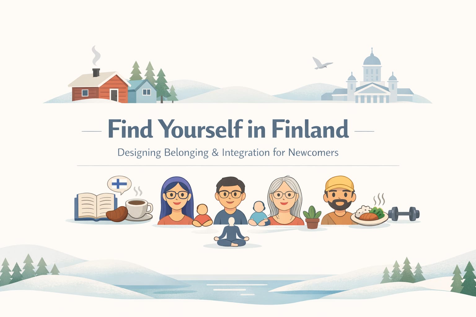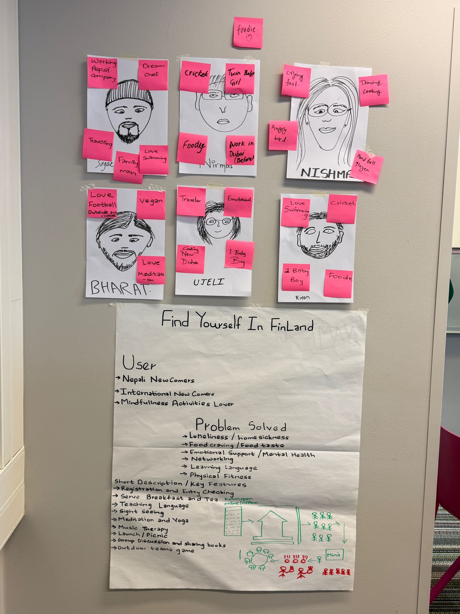During the workshop our team created a service concept called “Find Yourself in Finland”. It was meant to help newcomers adapt to life in Finland. Our prototype included: